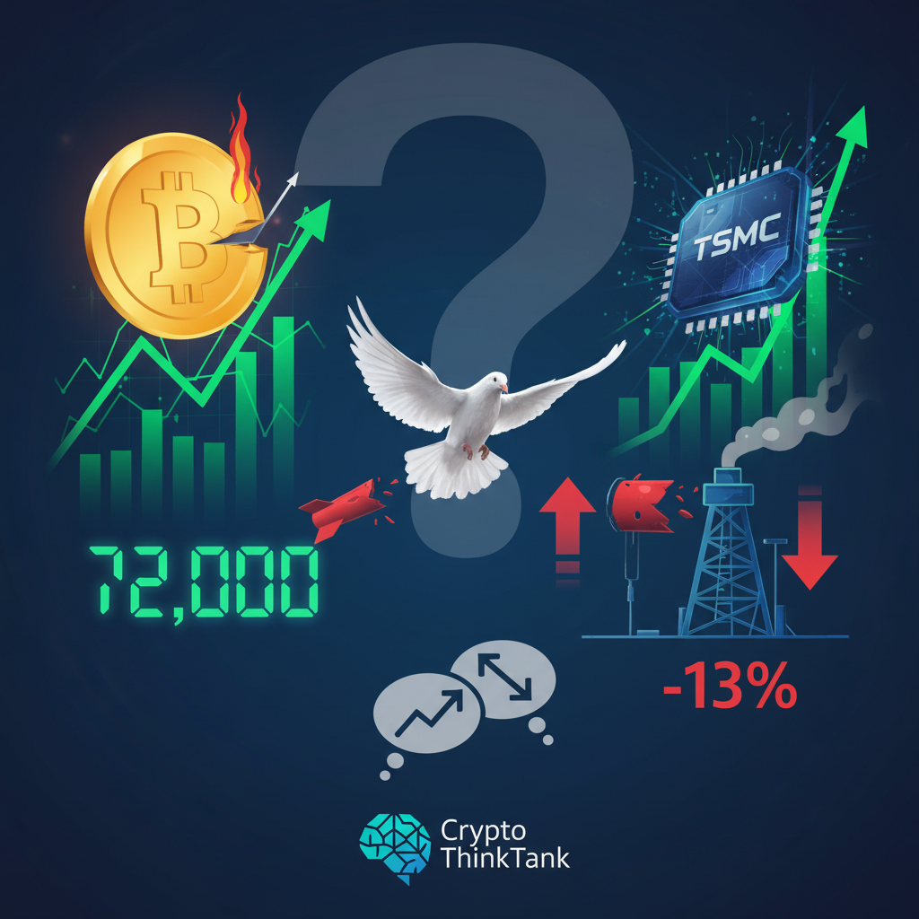 近日美伊戰爭進入兩週停火階段,市場情緒隨之劇烈波動。比特幣價格一舉飆破7.2萬美元大關,油價則大幅下跌約13%,同時台積電等科技股也出現顯著漲幅。然而,這樣的市場反應是否代表投資者可以高枕無憂呢?本篇透過Q&A 問答形式,幫助讀者了解美伊停火對金融市場及加密貨幣的影響,以及相關投資風險與應對策略。